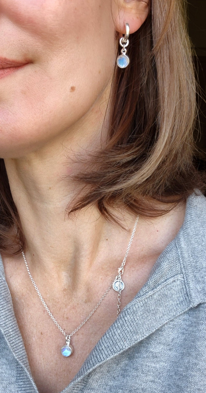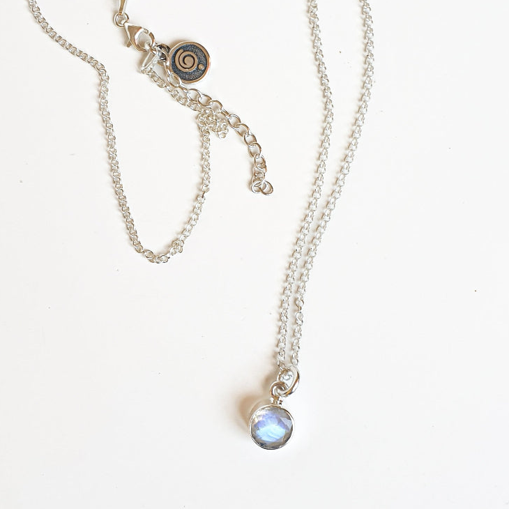Delicate Moonstone AAA grade Round Silver 925 Pendant with Chain "Intuition"
