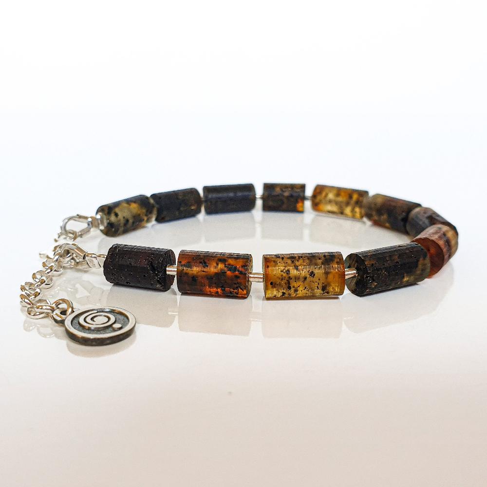Bracelet for women with natural amber and silver 925. It has an accent handcrafted silver 925 medallion with sign of Spiral representing prosperity and growth.
