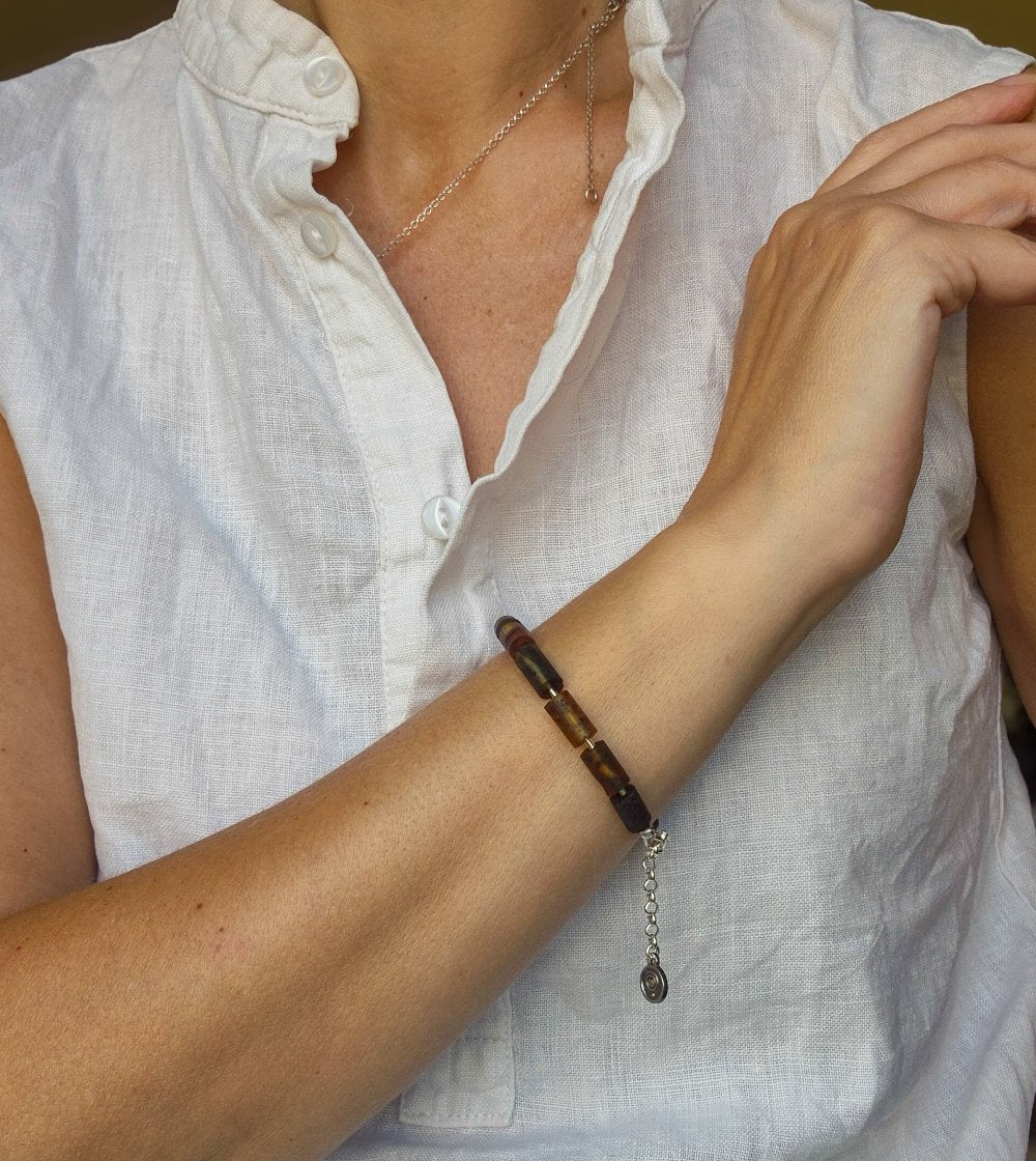 Every bracelet is unique - Amber pieces are natural, not polished, color, and bead size may slightly vary from presented in photos. Diameter of amber is ~6,5 mm.