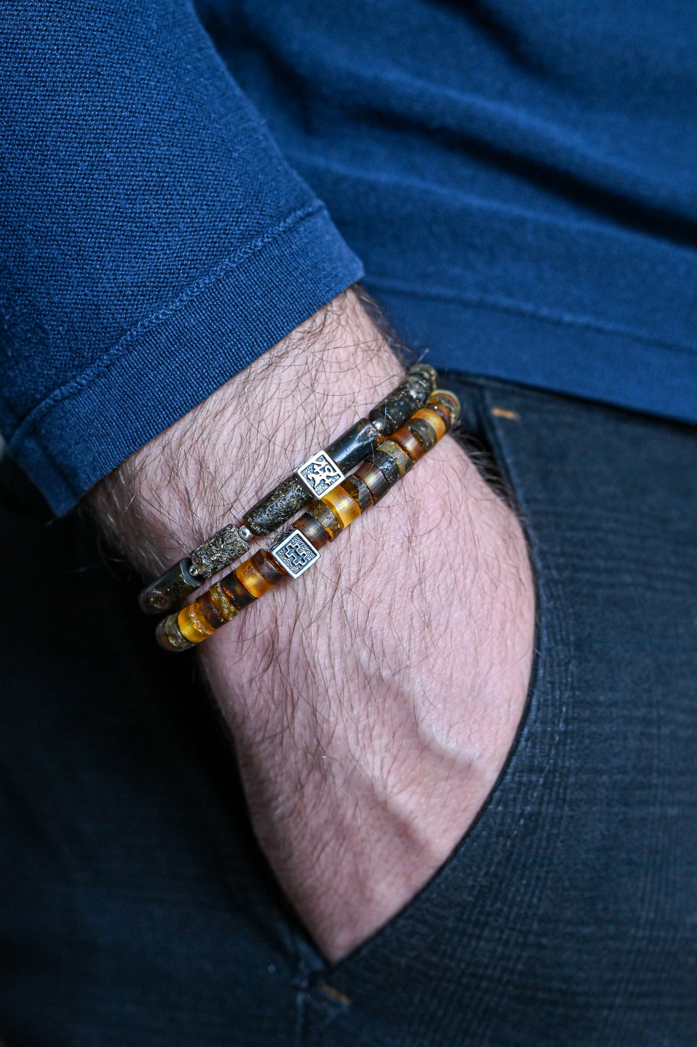 Every bracelet is unique - Amber pieces are natural, not polished, color, and bead size may slightly vary from presented in photos. Model (184 cm) in photo wears L size bracelet.