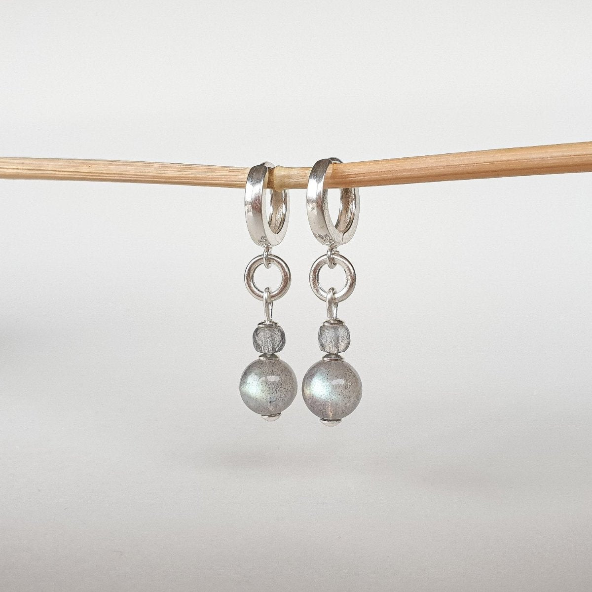 Labradorite silver 925 earrings for women "The Guardian". High-quality, natural, transparent, grey-blue labradorite. The size of the round labradorite is ~8 mm.