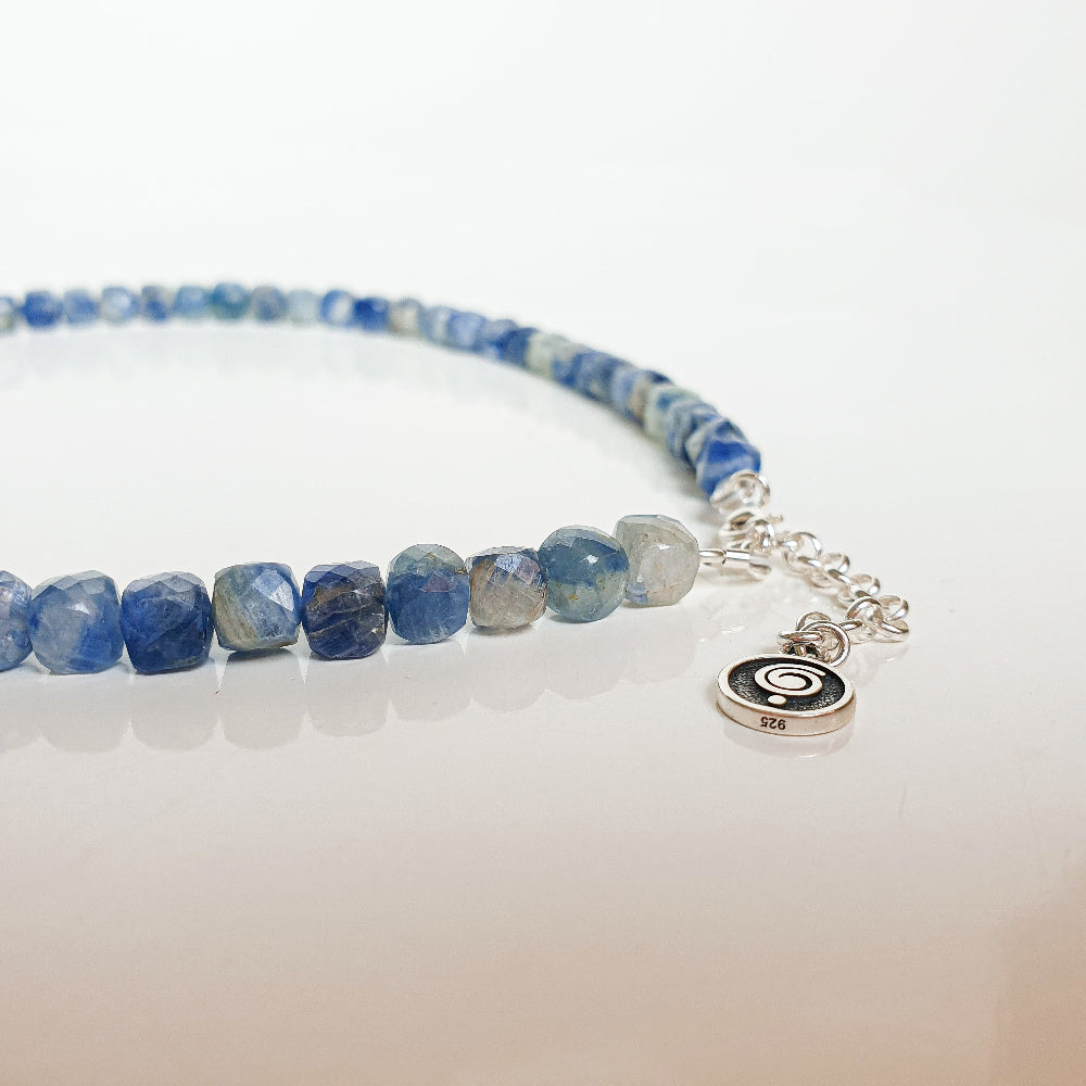 Silver 925 necklace for women with 6 mm natural A+ grade Kyanite assists with spiritual evolution and transformation. "By carrying kyanite, you will be caught in a whirlwind of transformations," says astro-mineralogist A.Igeviciene. Kyanite triggers new forces that will awaken your highest sleeping abilities.