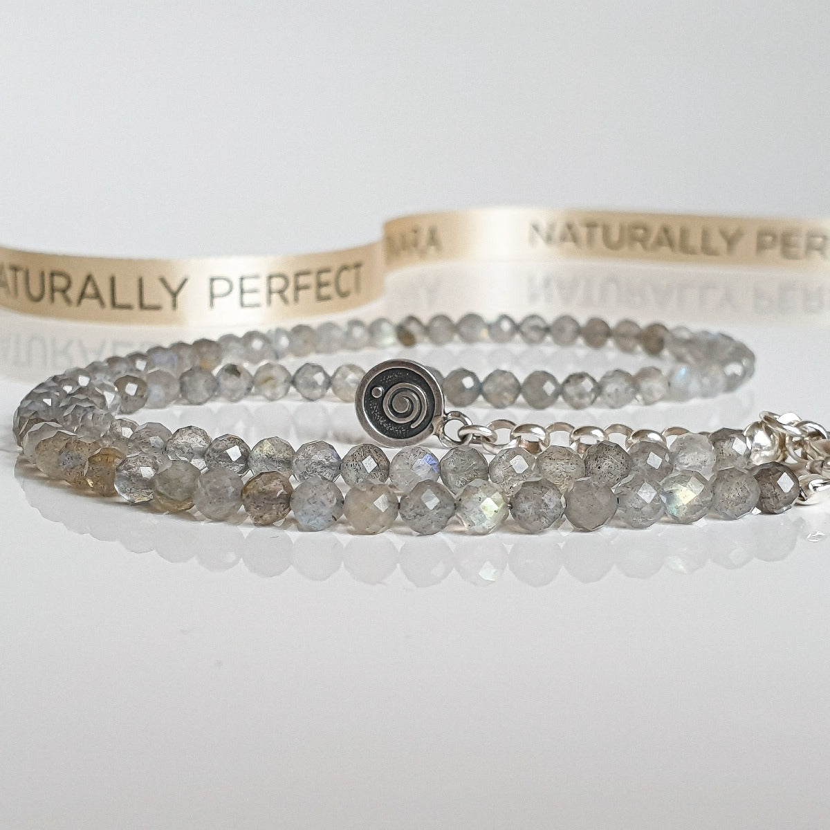 Petit Secret collection necklace for women with natural labradorite protects from various negative phenomena and situations. Labradorite helps you with the transformation of thought, intuition, strength and facilitates the ability to think clearly and guides you firmly through your life path.