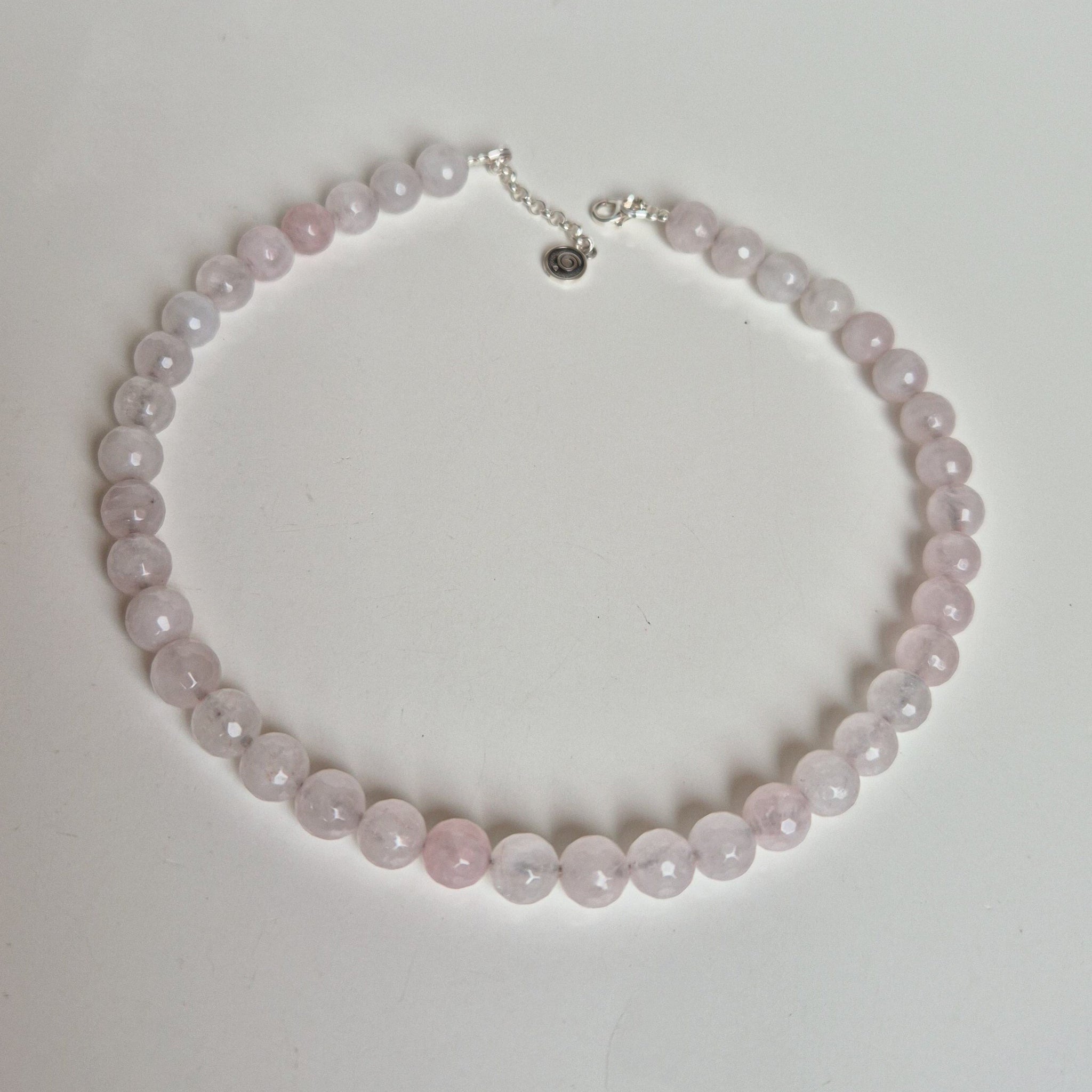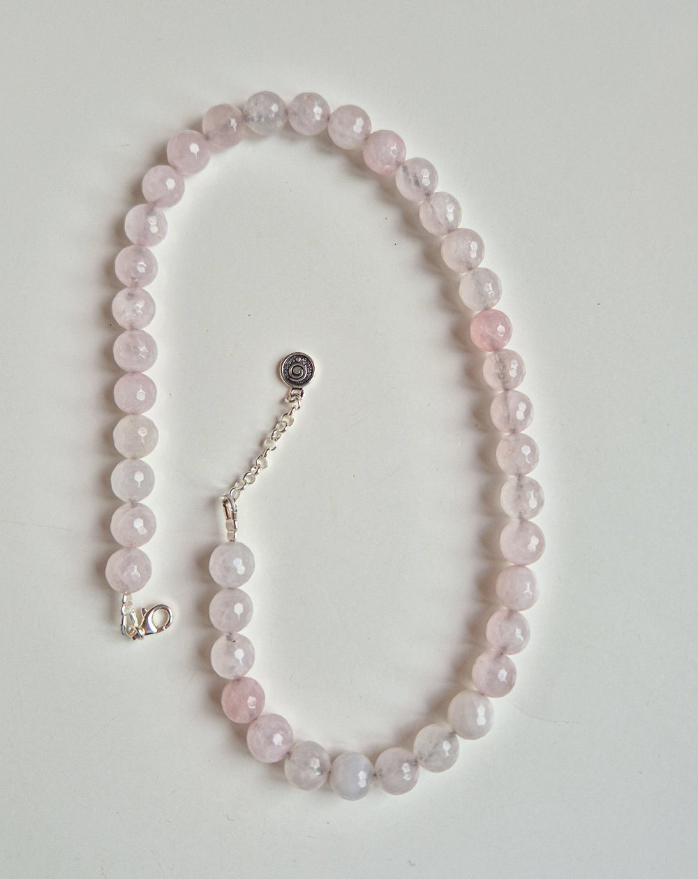 This necklace for women with 10 mm natural faceted pink quartz from Brasil. Pink quartz calms intense emotions, harmonizes, reconnects to self-worth and soul’s peace. If this stone would speak, you’d hear this: "Accept yourself, enjoy yourself, celebrate all achievements, even the little ones, fall in love with yourself and celebrate life!".