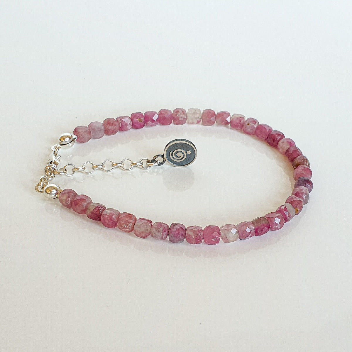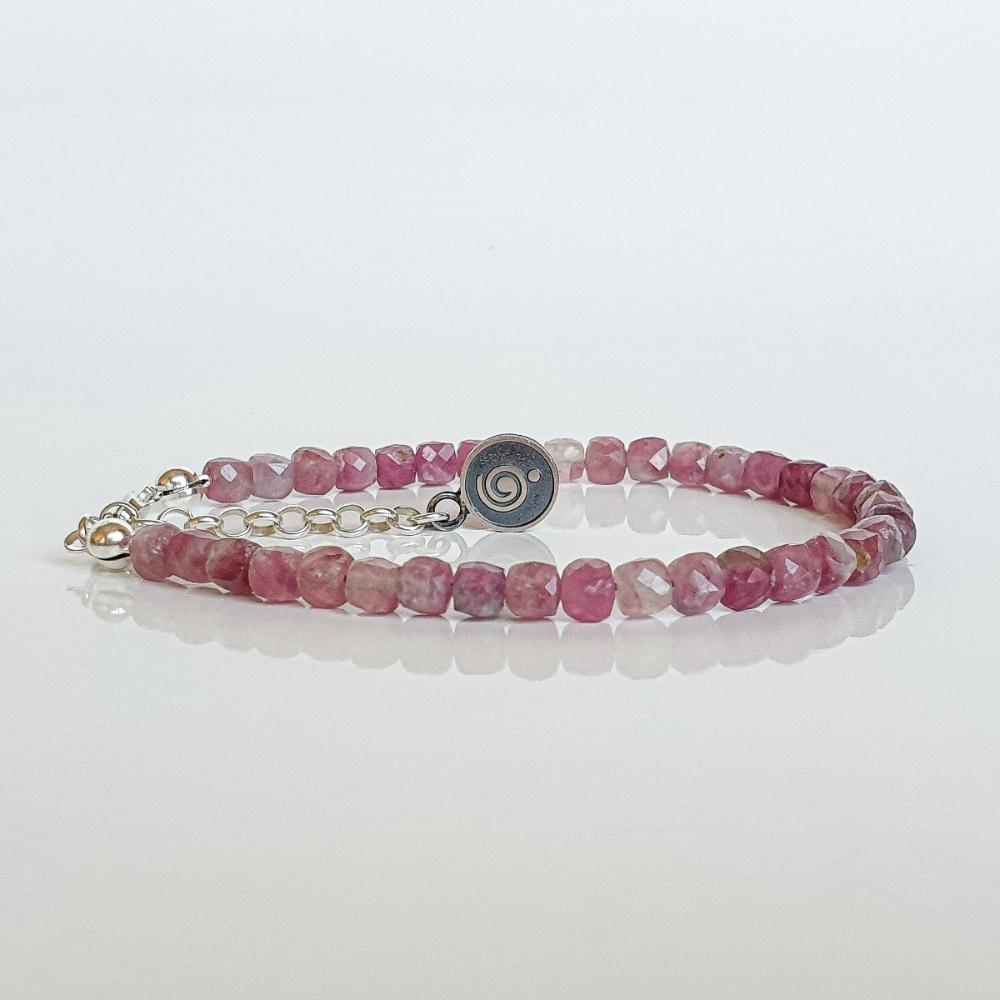 Petit Secret collection bracelet for women with natural Pink Tourmaline. Tourmalines are especially appreciated by mineralogists. Researchers call them donors of the mineral kingdom radiating their energy outward. It is believed that tourmaline promotes spiritual growth, supplies the physical body with life force energy, provides emotional stability and intellectual acuity.