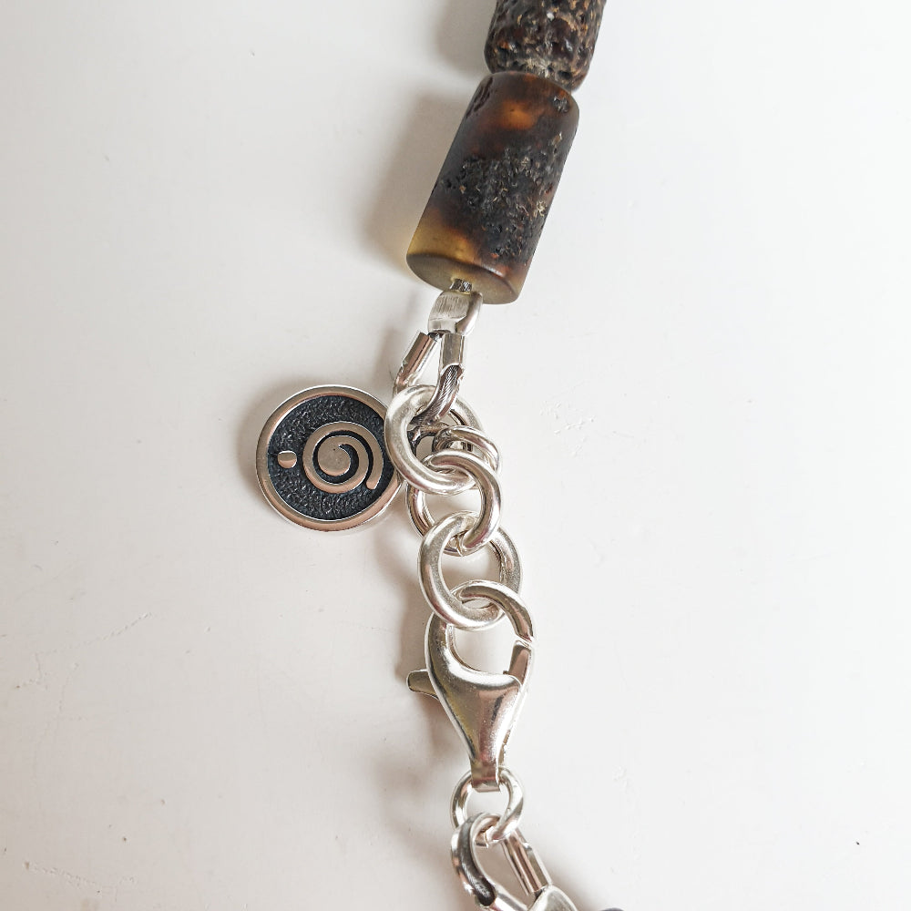 Necklace has an accent handcrafted silver 925 medallion with sign of Spiral representing prosperity and growth.