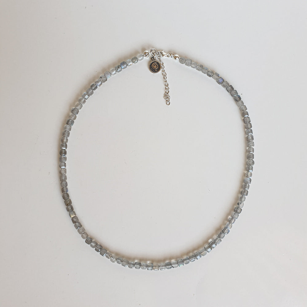 Set of Petit Secret collection necklace and bracelet for women with natural labradorite protects from various negative phenomena and situations. Labradorite helps you with the transformation of thought, intuition, strength and facilitates the ability to think clearly and guides you firmly through your life path.