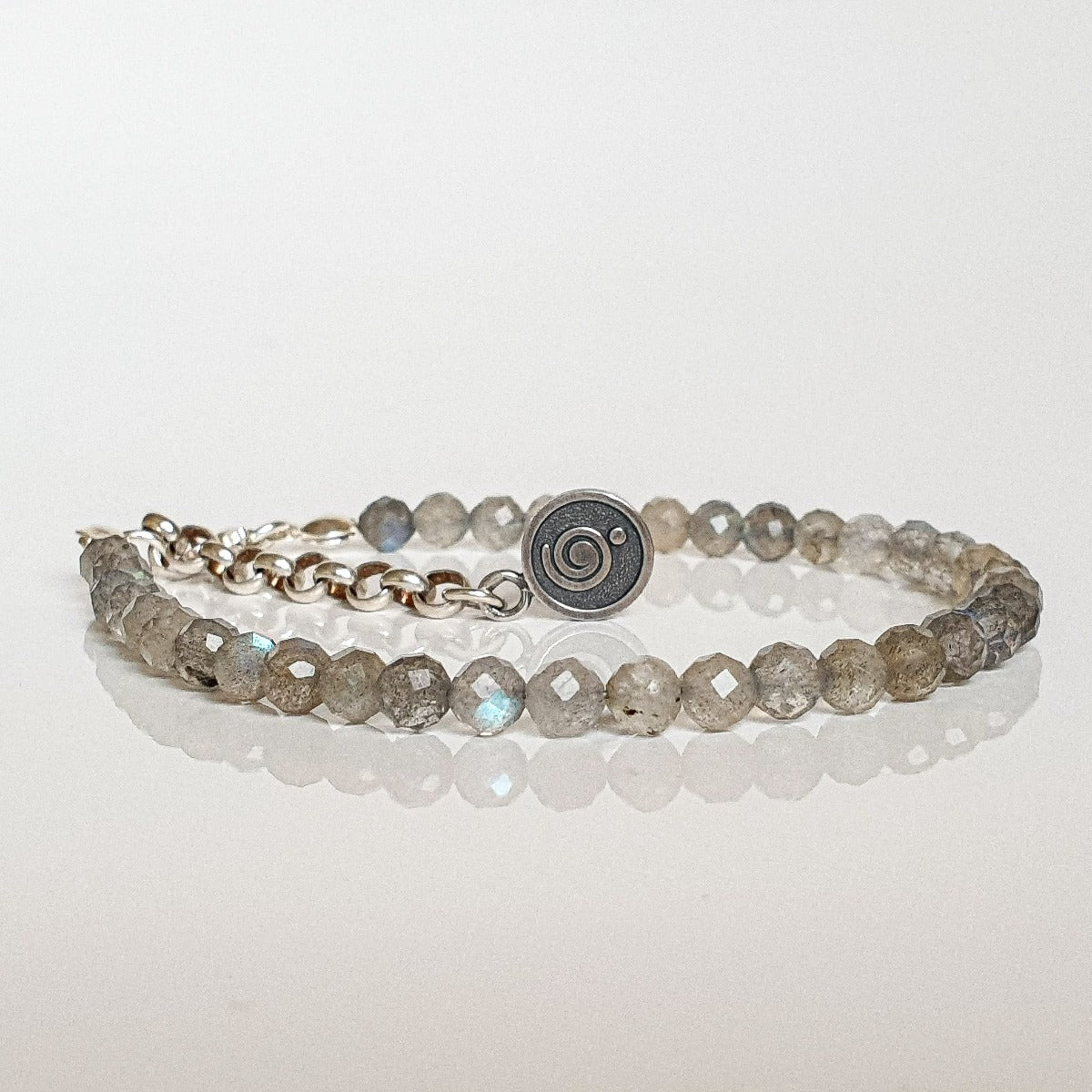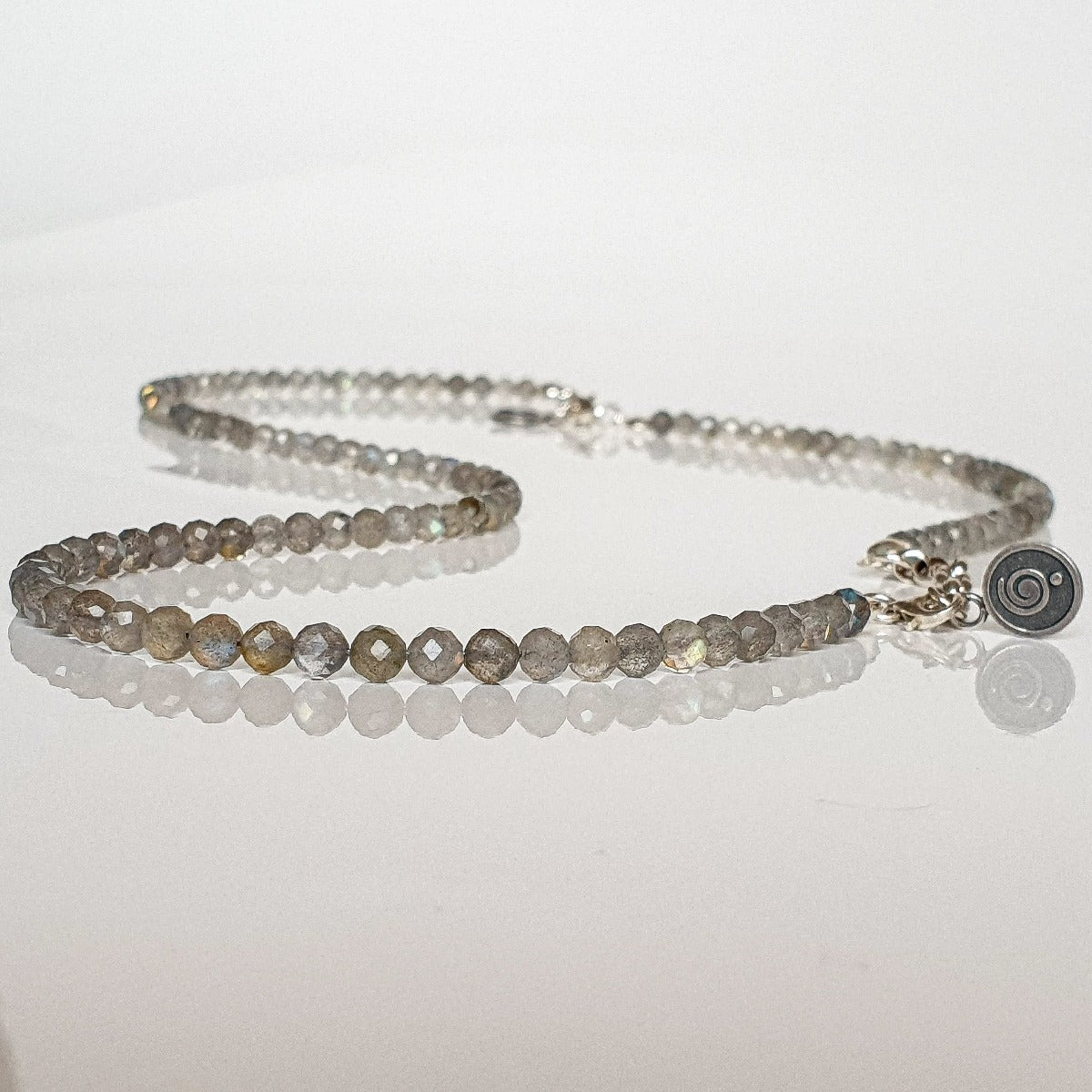 Set of Petit Secret collection necklace and bracelet for women with natural labradorite protects from various negative phenomena and situations. Labradorite helps you with the transformation of thought, intuition, strength and facilitates the ability to think clearly and guides you firmly through your life path.