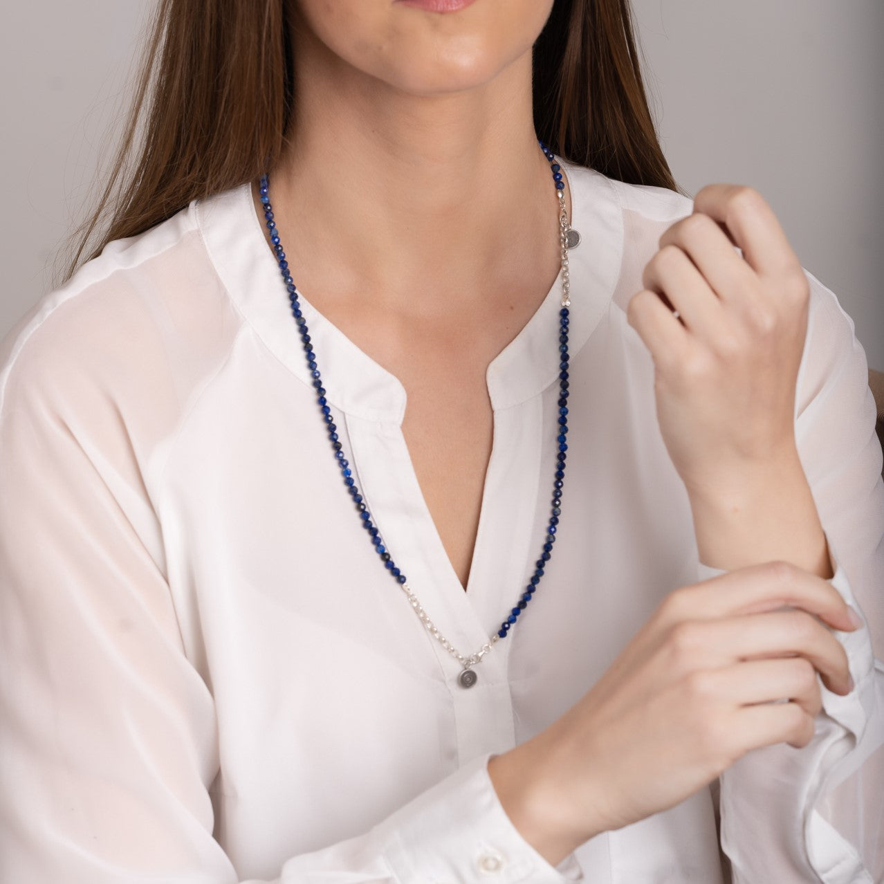 Petit Secret collection set of necklace and bracelet with silver 925 and natural lazurite - stone of wisdom, truth and glory.