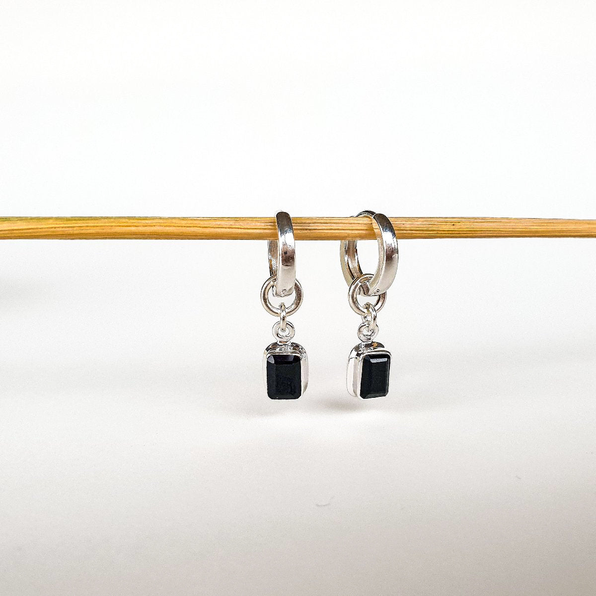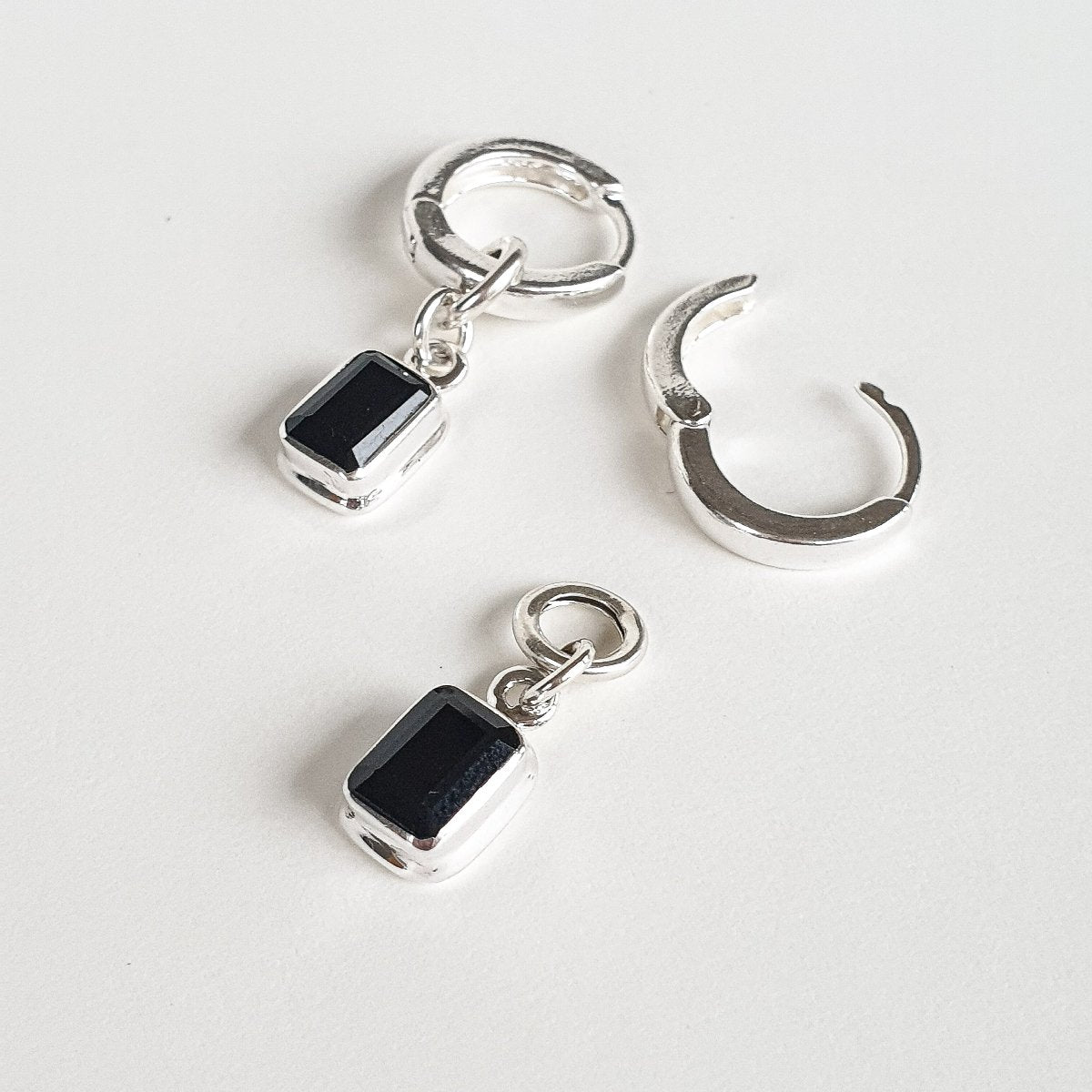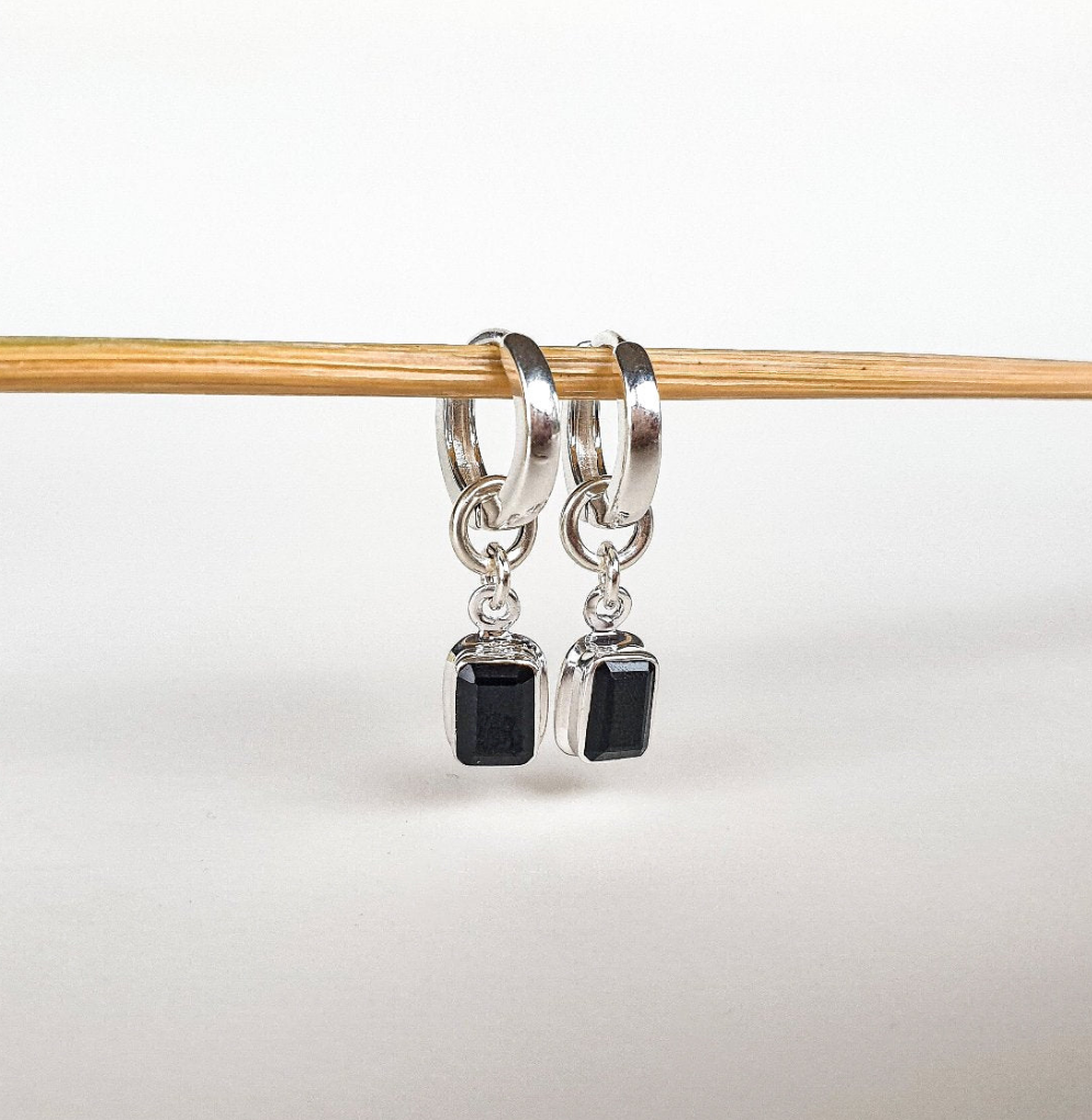Natural spinel elegant silver 925 earrings for women "Evolution". High quality black spinel size is ~9mm x ~6mm, this earring piece can be worn separately as a pendant.