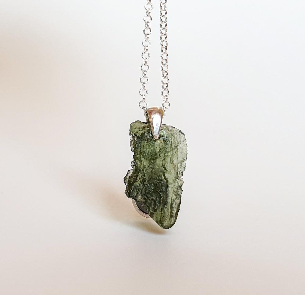 Carrying or wearing Moldavite in jewelry allows its energies to remain in one's vibrational field throughout the day strengthening its effects and increasing the incidents of beneficial synchronicities in daily life. Because of Moldavite's intense vibration, some may experience light-headedness or a lack of grounding and may need to acclimate themselves gradually to wearing it.