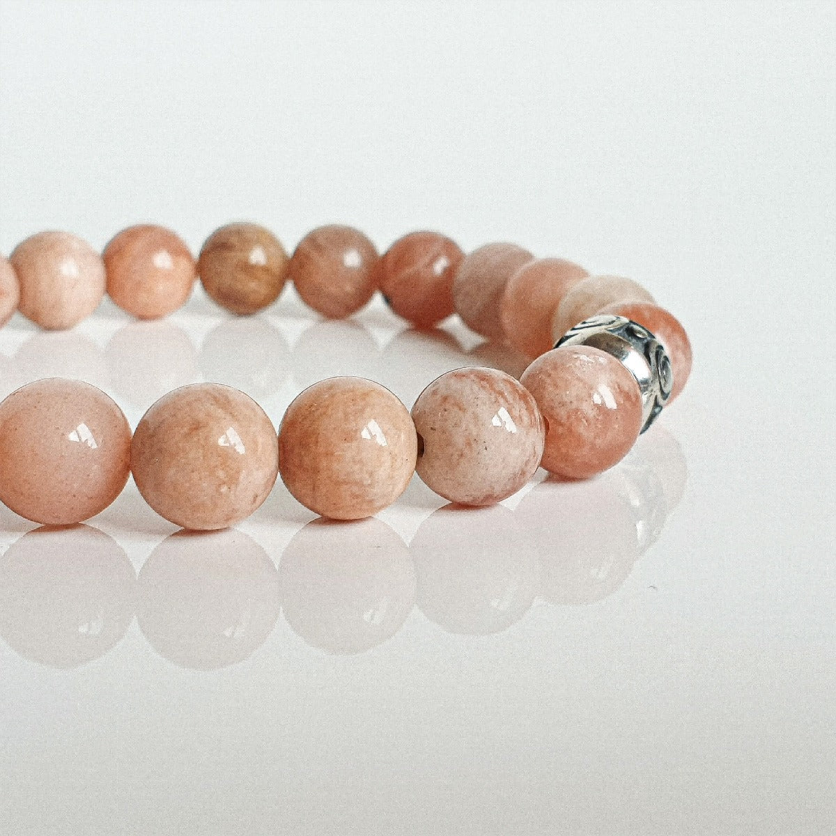 Bracelet for women with 8 mm natural Sunstone represents joy and self-realization. The importance of this mineral is closely linked to luck as well as to happiness and abundance. Sunstone promotes positive energy, determination and will. It is believed that this beautiful stone dispels fear and inspires vitality and optimism.