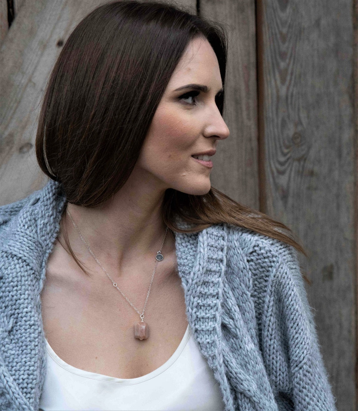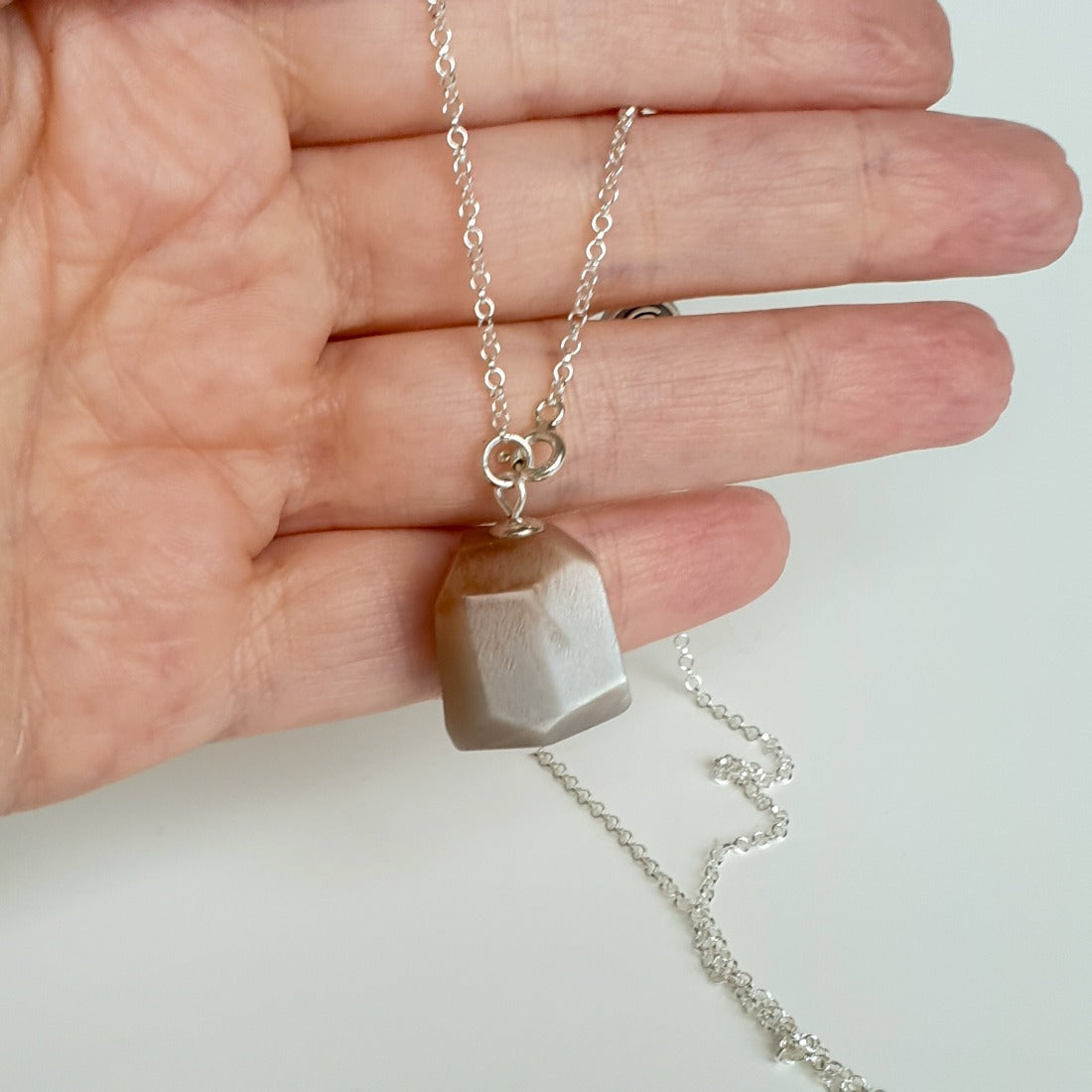 Elegant puzzle necklace with a strong statement for self-realization, joy and happiness. It comes with a piece of natural Sunstone linked with a silver medallion - sighn of Spiral, a symbol of self-growth.
