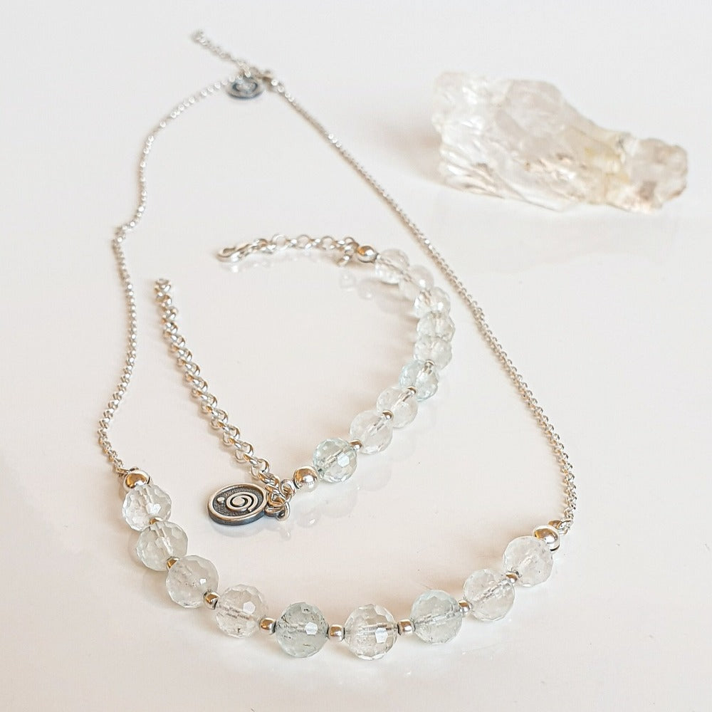 Set of Light blue topaz silver 925 necklace and bracelet for women.